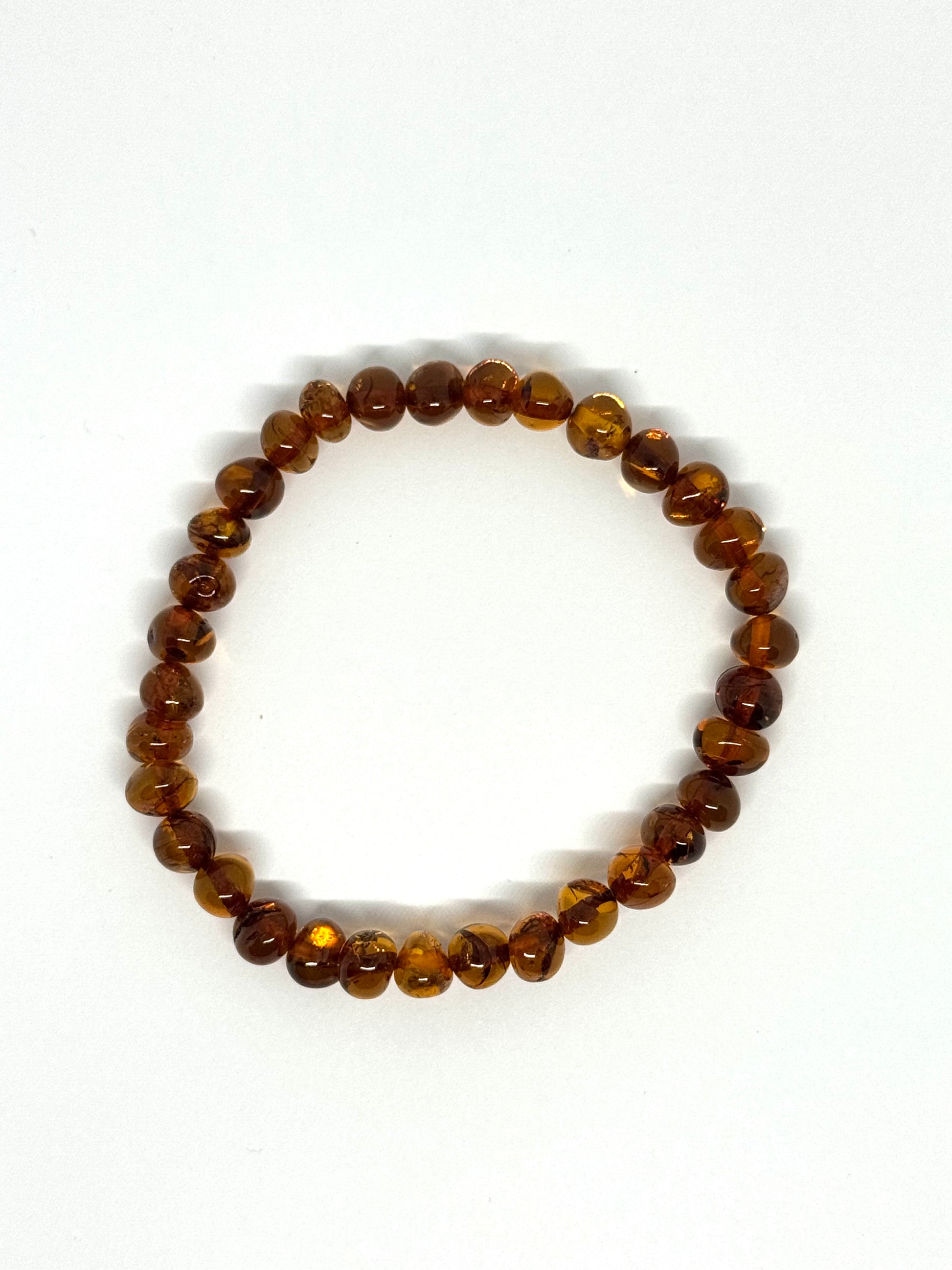 Barnsteen Elastisch Armband - Cognac (18-19 cm)