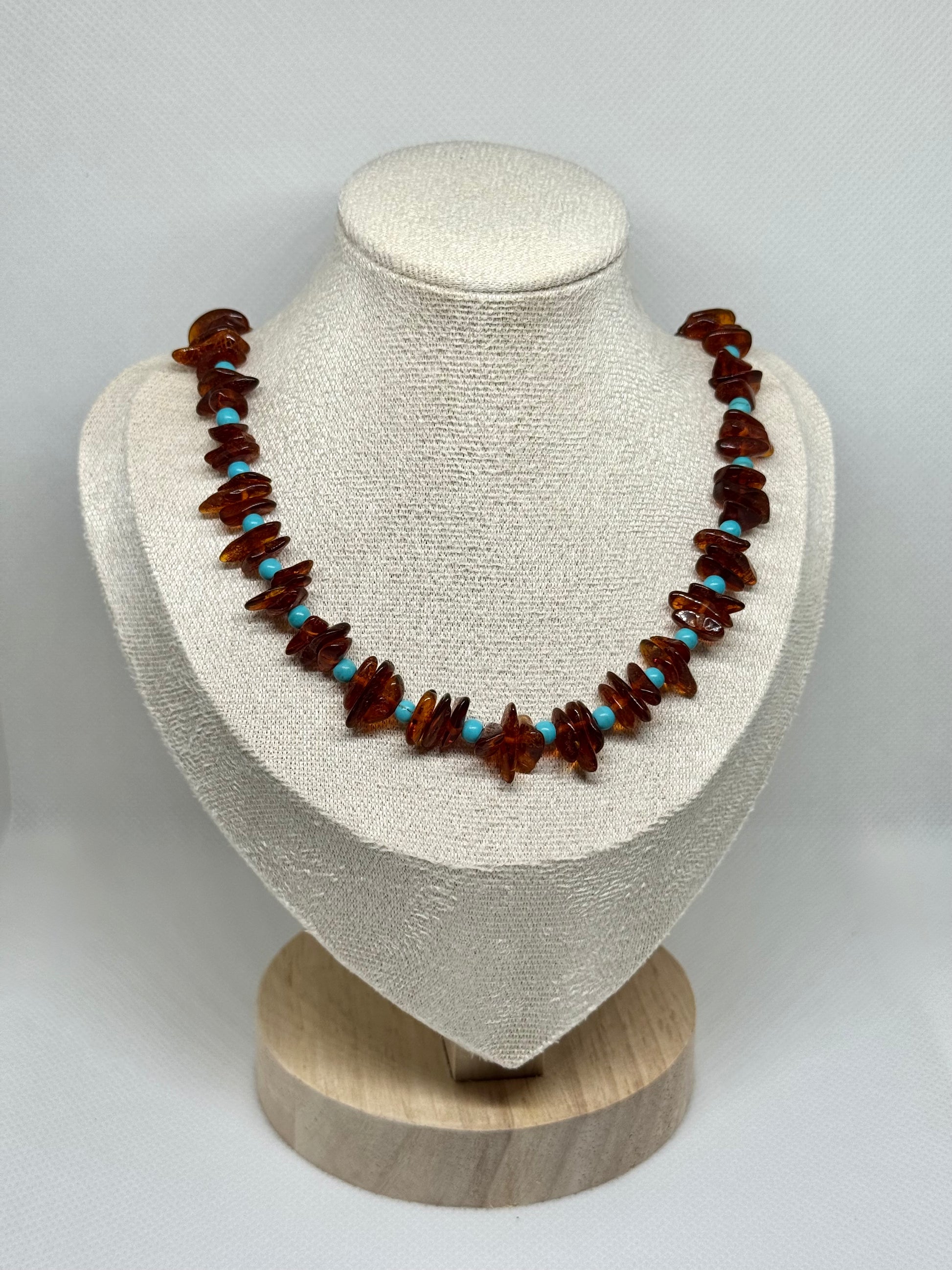 Barnsteen & Natuursteen Ketting - Cognac & Turkuoois (46 cm)