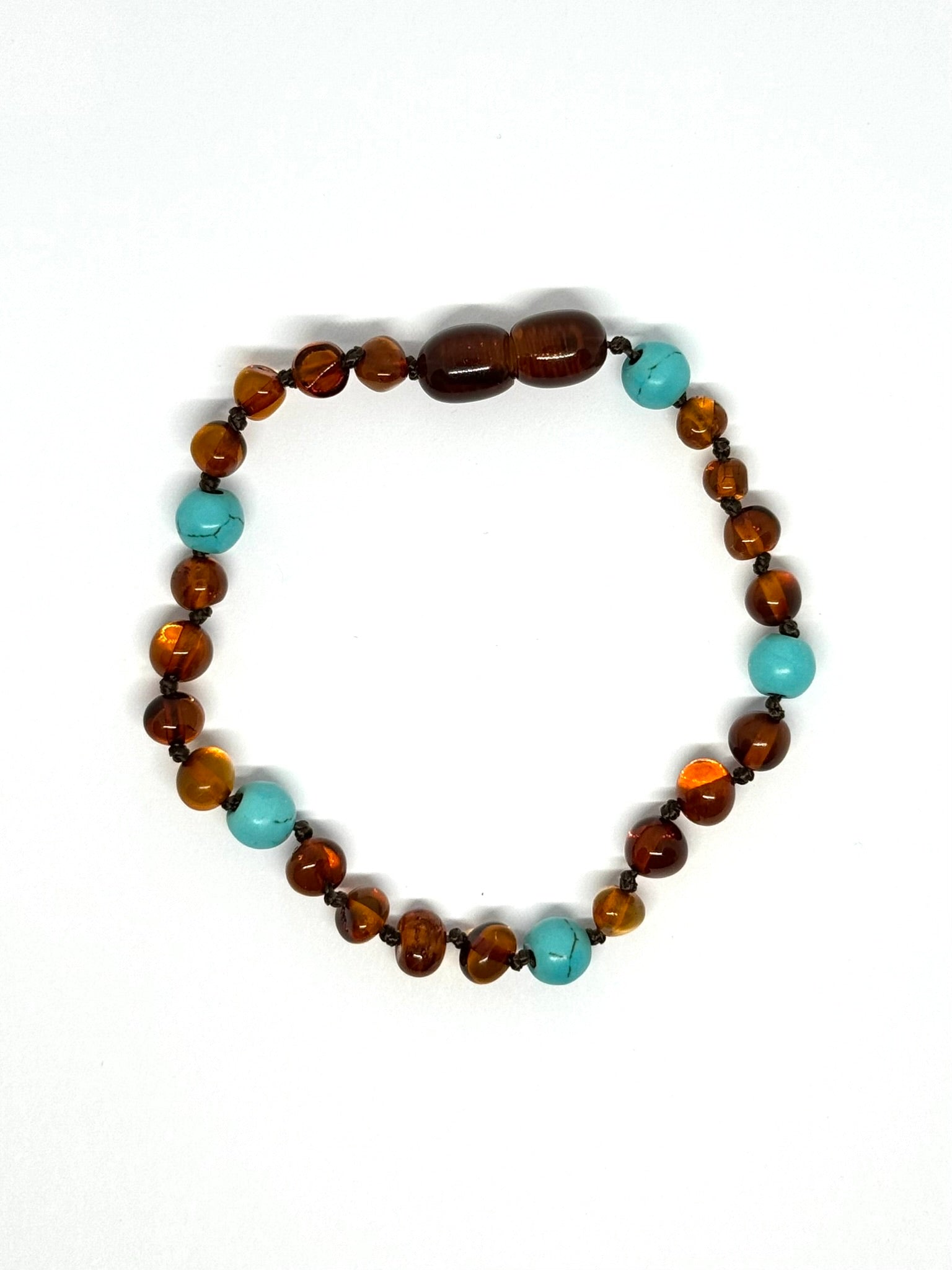Barnsteen & Natuursteen Armband - Cognac & Turkuoois (19 cm)